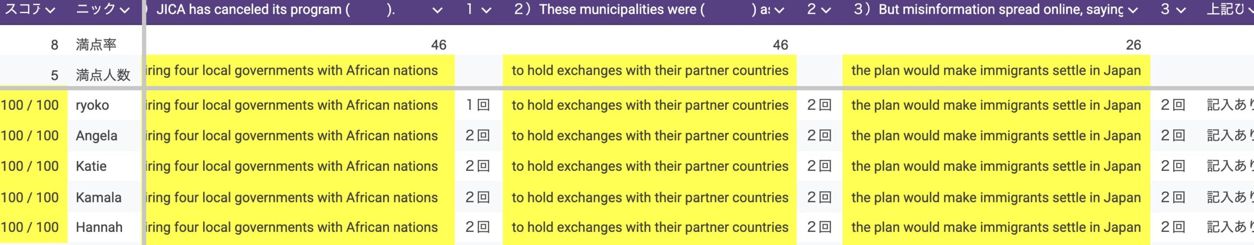 メルマガ企画「穴埋めディクテーションQuiz」答案と成績発表