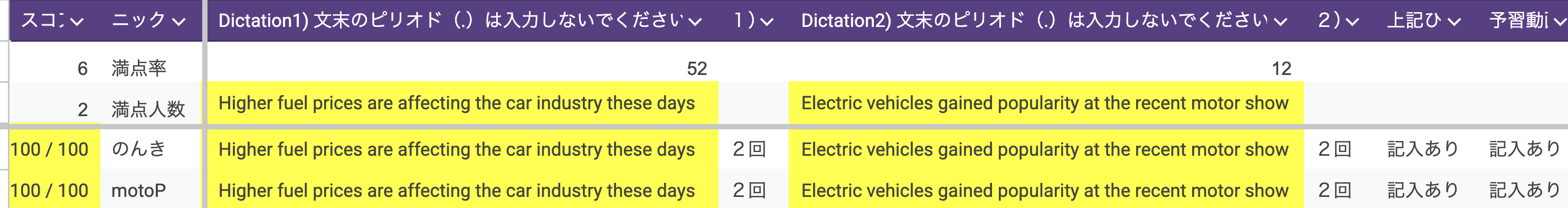 今回のディクテーションQuizの難易度は標準です。満点は2名、全問正解率が6%という結果でした。