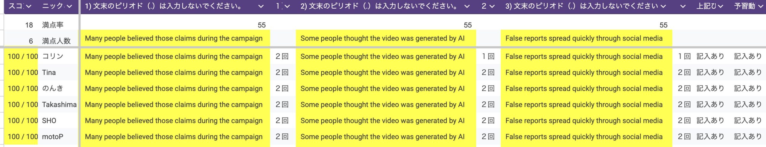 ▶満点率(リスニング回数「2回以内」の条件付):18% ▶最優秀賞(満点):6名