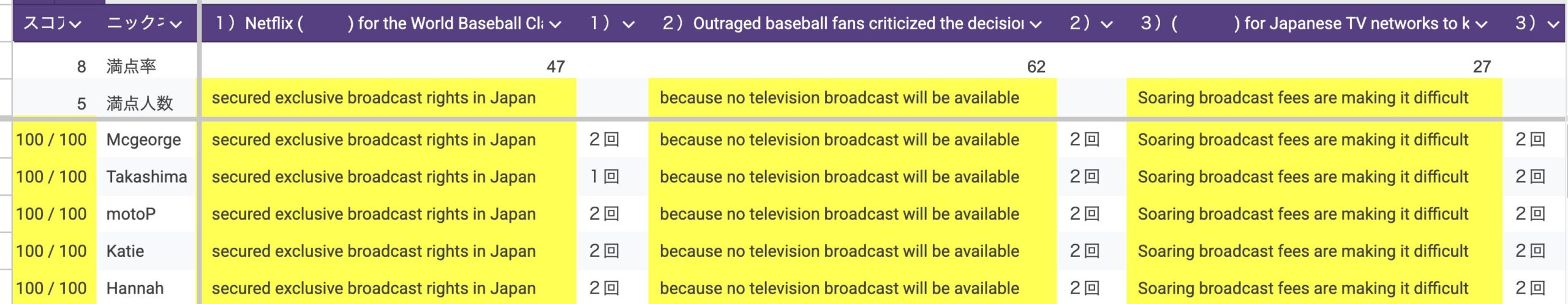 ここからはメルマガ企画「穴埋めディクテーション」の正解と解説・成績優秀者の発表です。