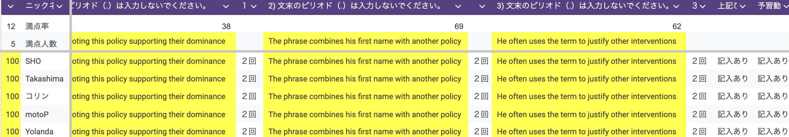 今回のディクテーションQuizの難易度はやや高めです。満点は5名、全問正解率は12%という成績でした。