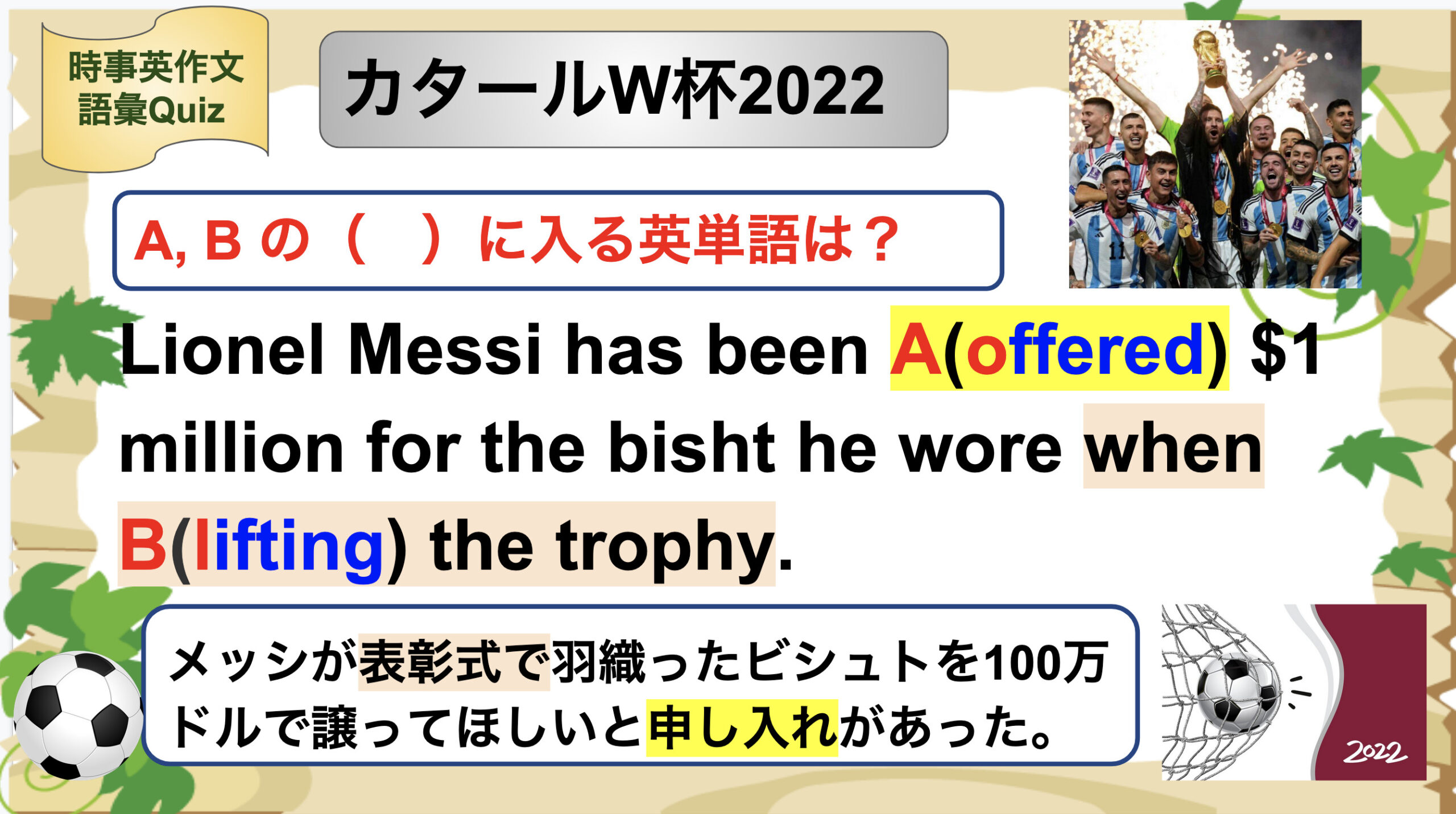 【W杯語彙Quiz】メッシ着用ビシュトに100万ドルの打診
